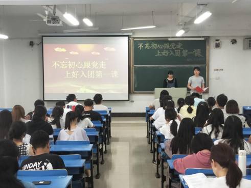 活动分为唱中国共产主义青年团团歌、重温入团誓词、学习习近平总书记重要讲话、观看“团课”视频等四部分。活动伊始,到场的全体团员起立合唱共青团团歌,激昂澎湃的歌声使同学们感受到一名团员的使命与担当。随后,领誓人带领团员们宣读入团誓词,增强每一位团员青年的团员意识,时刻牢记作为一名光荣的共青团员的初心与责任,努力将誓词化为行动,严于律己,砥砺前行。接着,大家共同学习了习近平总书记在纪念五四运动100周年大会上的重要讲话,青年大学生要志存高远,要在实现中华民族伟大复兴的征程中接续奋斗。活动最后,全体观看了“团课”视频,回顾共青团的光荣历史和优良传统、加入共青团的基本要求和程序仪式等,以进一步加深学生对共青团的认识,不断增强同学们对团组织的认同感和归属感。