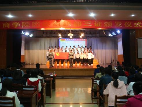 于秀山校区老学生活动中心举办2018级新生团员“三证颁发”仪式。院团委书记、副书记,新生辅导员,学生会各部门主要学生干部以及大一新生团员代表参加了本次大会。