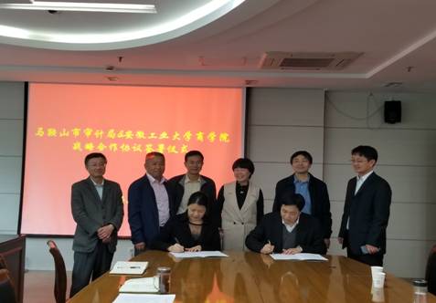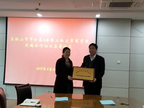 战略合作协议》,协议建立在合作会商制度基础上,围绕搭建大学生与研究生实习平台、开展审计科研与项目合作、开展审计人员知识更新服务等内容开展全方位、多领域、深层次合作,实现资源共享,互惠共赢。最后两人为共建的实践与就业基地挂牌。(撰稿:毕春霞;审核:黄国才)