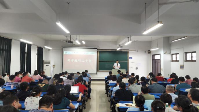在汇文楼D507召开新学期教职工大会,全院教职工参加了会议。会议由院副院长李伟军主持。