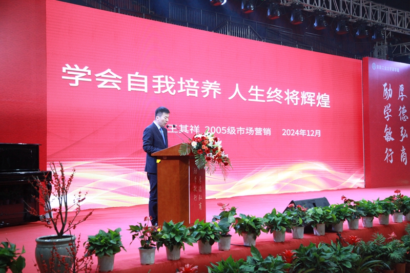 学生工作取得的成绩,并提出四点希望:一是希望同学们坚定理想信念,明确奋斗目标;二是希望同学们勇于培养创新思维,为社会发展贡献更多智慧和力量;三是希望同学们增强社会责任感,为构建和谐社会贡献力量;四是希望同学们注重培养动手能力和解决实际问题的能力,努力成为适应时代需求的应用型人才。
