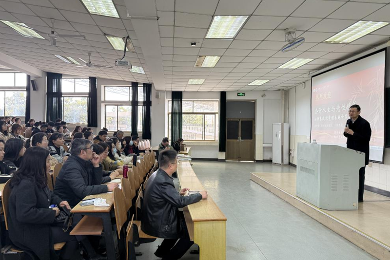 林钟高教授以“会计人生 你我同行”为主题,结合自身求学和工作经历,与大学生们分享自己在求学、教学、科研、管理工作中的人生感悟。他用鲜活的故事和朴实生动的语言告诉同学们什么是大学学习的精髓,阐述了如何面对不熟悉的工作领域、如何看待考公、考证与考研问题以及要在感恩中获得认知与成长等。他希望同学们要牢记习近平总书记对青年的殷切嘱托和期望,立志做有理想、敢担当、能吃苦、肯奋斗的新时代好青年。