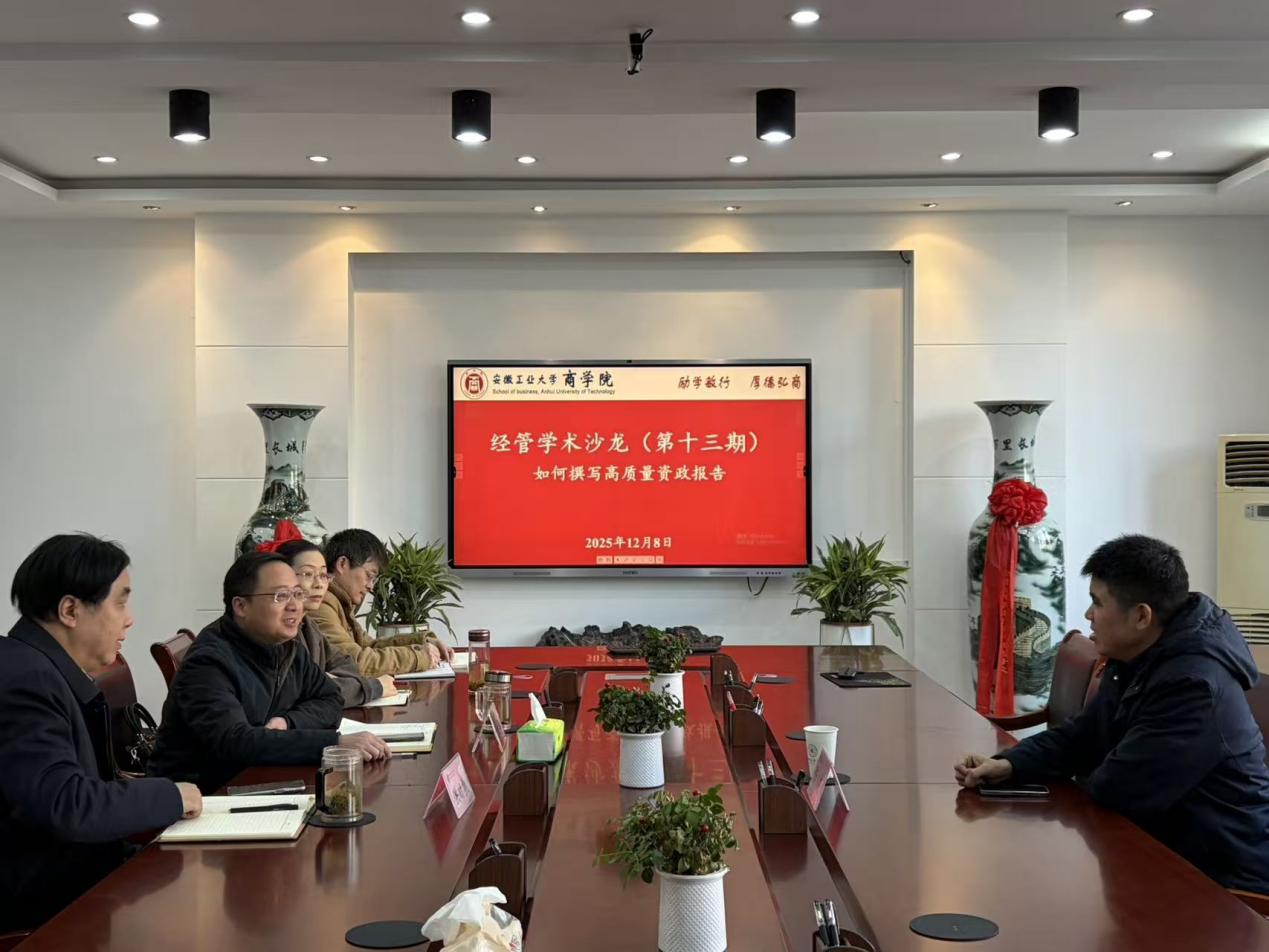 召开经管学术沙龙(第十三期),会议主题为“如何撰写高质量资政报告”。会议邀请了南京大学长江产业发展研究院陈东研究员莅临指导。安徽工业大学安徽创新驱动发展研究院院长洪功翔,足球数据网