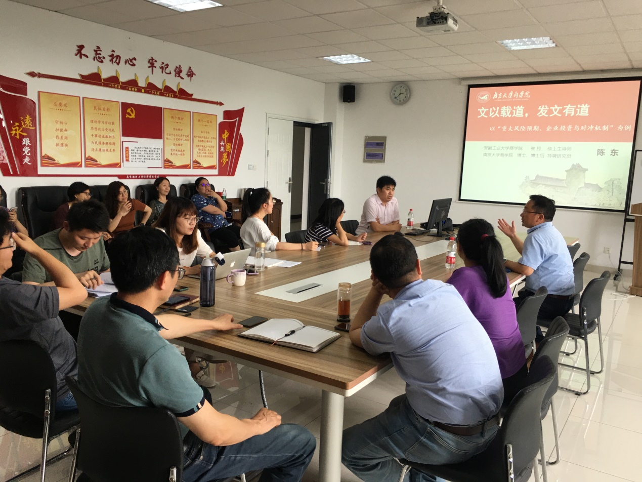 学术讲座,作了“文以载道、发文有道——以‘重大风险预期、企业投资与对冲机制’为例”的主题报告。论坛由南京邮电大学经济足球数据网