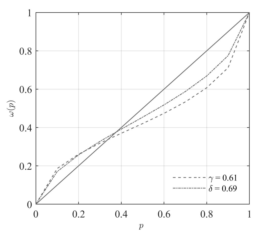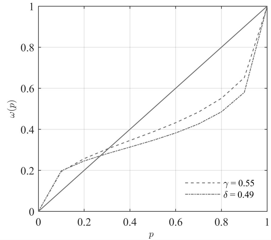 (中国实验的概率权重函数曲线)