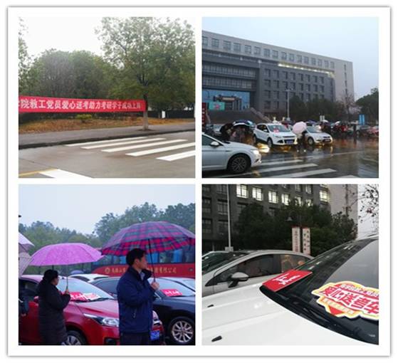 每位考生能安全、准时到达考点,院党委积极谋划,动员教工党员组建爱心送考车队,志愿送考研学生赴相应各考点。活动得到了广大教师积极响应,共有50余位教工党员主动承担专车送考或随车送考任务,两天里共送考研学生达260余人次,切实为考研学子顺利赴考保驾护航。