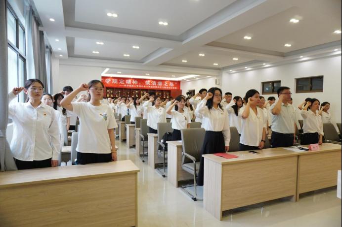 一句誓言,一枚徽章,一次仪式,一份担当。入党宣誓仪式既是党员政治生命的新起点,又是一次生动的党性教育。通过本次宣誓仪式,新发展党员们纷纷表示,将牢记今日的铮铮誓言,以实际行动践行入党初心,勇担时代责任,争做复兴栋梁,强国先锋,用青春和智慧书写无愧于党和人民的时代答卷!(撰稿:汤彩黎薛玉林 审核:肖梦雨 李曼 杜飞)