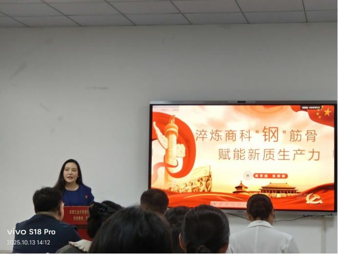 赛后,院党委书记杜飞总结讲话,对比赛的圆满成功表示祝贺,对参赛选手展现出的蓬勃朝气、扎实理论功底与强烈责任担当给予高度评价。杜飞强调,党课是筑牢党员思想根基、凝聚奋进力量的关键抓手,本次比赛围绕特定党课主题展开,紧扣时代脉搏与学校发展实际,对党员明晰初心使命、提升思想认识具有重要意义。他要求各支部切实落实“三会一课” 制度,结合实际与党员需求创新党课形式、丰富内容,让党课兼具 “理论高度” 与 “实践温度”;全体党员要以比赛为契机,将党课学习成果转化为实际行动,深入贯彻校第五次党代会精神,紧扣学校发展战略,立足岗位凝心聚力、守正创新,为谱写 “教育强国、安徽强省” 的安工大答卷贡献力量。