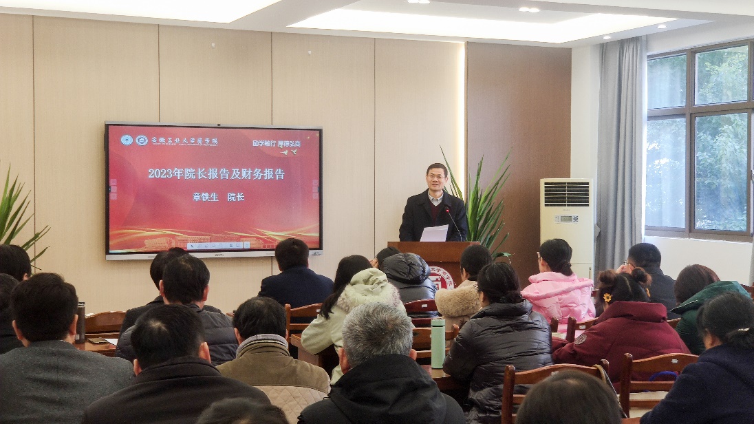 三届三次教代会暨工代会在汇文楼B204隆重召开。院党政领导、全体正式代表及列席代表参加会议,会议由院党委副书记、院纪委书记、副院长蒋磊主持。