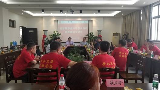 党委书记、院校友会会长洪功翔,院党委副书记、副院长张虎,院办公室主任毕春霞参加了座谈交流。会议由张虎主持。