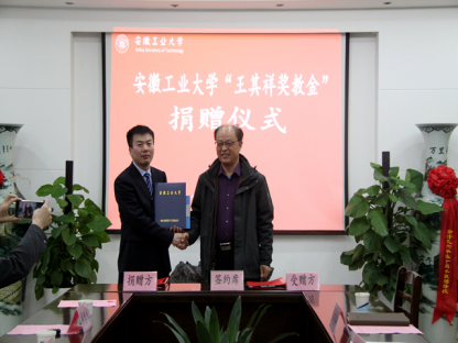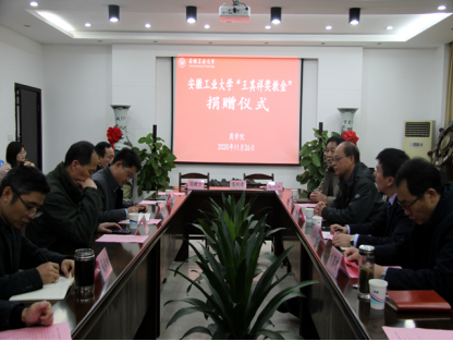 11月26日下午,安徽工业大学“王其祥奖教金”捐赠仪式在秀山校区汇文楼足球数据网