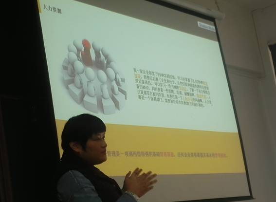 作为面向新生开设的人力资源管理和工商管理的专业导论课,如何迅速的吸引新生对本专业的兴趣和提高专业认识,并有意识的在今后四年的学习生涯中主动地向专业素质要求靠拢和努力,课堂组织形式和交流的内容十分重要。经过课程组的研究讨论,一致认为邀请往届校友回校做演讲和交流,比单纯的教师课堂灌输,无论是从形式的新颖性还是学生的接受理解度上,都有很大的优势。于是,邀请了往届校友——安徽爱夫卡电子科技有限公司公共事业部总监、行政人事部经理洪灿女士回校为大一的新生们进行了一场生动精彩的专业教育和交流。