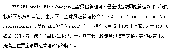 FRM的价值远远高于证书本身,能证明持证人拥有做出客观的风险及相应管理决策必备的、完整的知识结构和能力,在就业选择上会拥有更多机会。