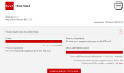 从大一下学期转专业到现在,ACCA几乎伴随她走过了整个大学阶段。她一直认真努力,脚踏实地,不急不躁,在大三那段时间曾和她一起并肩的小伙伴,有人选择了考研暂停学习,她有过迷茫,但最后她依然决定将ACCA奋战到底;皇天不负有心人,最终在考研前她通过了ACCA全科考试,并且考研也成功进入复试阶段;正因她当初坚持的选择,一如既往的向前努力奋斗,才让她可以把握现在。