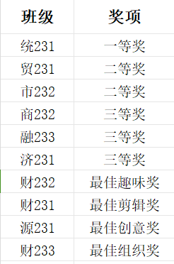 以下是本次答辩活动获奖班级名单: