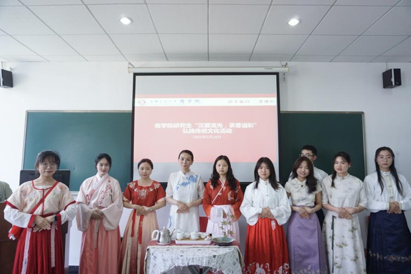 研究生在秀山校区汇文楼C413举办了“汉服流光,茶香溢彩”弘扬传统文化活动,旨在弘扬和传承中华优秀传统文化,增强同学们对中国茶文化和汉服文化的认识和体验。活动邀请了中国形象协会高级培训讲师、马鞍山市心梦想礼仪协会、美格形象礼仪工作室首席讲师赵菁老师为同学们进行现场讲解,五十余名研究生参加了活动。本次活动由院研究生会主办。