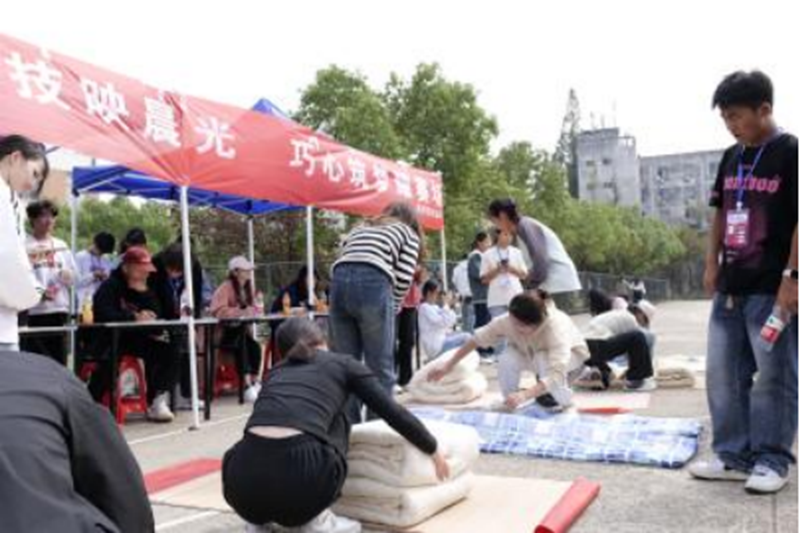 参赛的学子们依照抽签的顺序,逐一登台展示。评委团和军训教官们秉持公开、公平、公正的原则,从被子的平整度、线条的流畅度、整体的审美韵味以及叠放的速度、时间等多个维度,进行严格的评判与打分。此次比赛,教官的展示不仅让同学们掌握了更为标准的叠被方法,更提升了个人生活自理的能力,为日后的宿舍生活铺垫了坚实的基础。