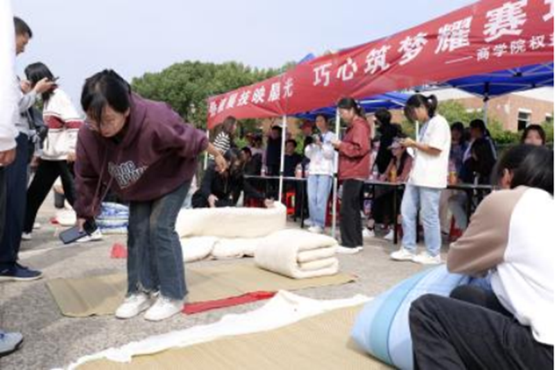 于AB篮球场举办了一场“军训叠被子大赛”活动。