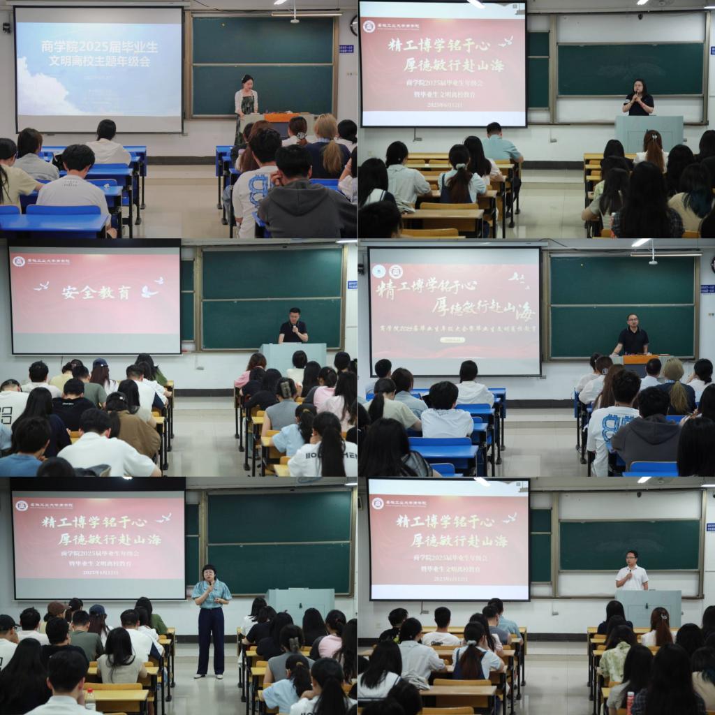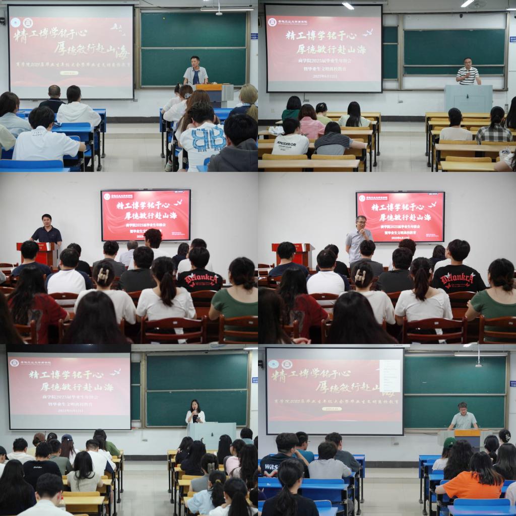 的成长轨迹——从课堂求知的专注身影,到实践历练的摸爬滚打,肯定大家以汗水为墨、努力为笔书写逐梦篇章。围绕“精工博学铭于心”,强调专业知识是安身立命根本,鼓励对所学专业持续深耕,无论深造钻研学术或职场拼搏,都以扎实学识为基,拓宽知识深度与广度;谈及“厚德敏行赴山海”,寄语坚守道德初心,以积极行动奔赴人生新赛道,在时代浪潮中勇挑责任重担,用实干实绩书写人生价值。