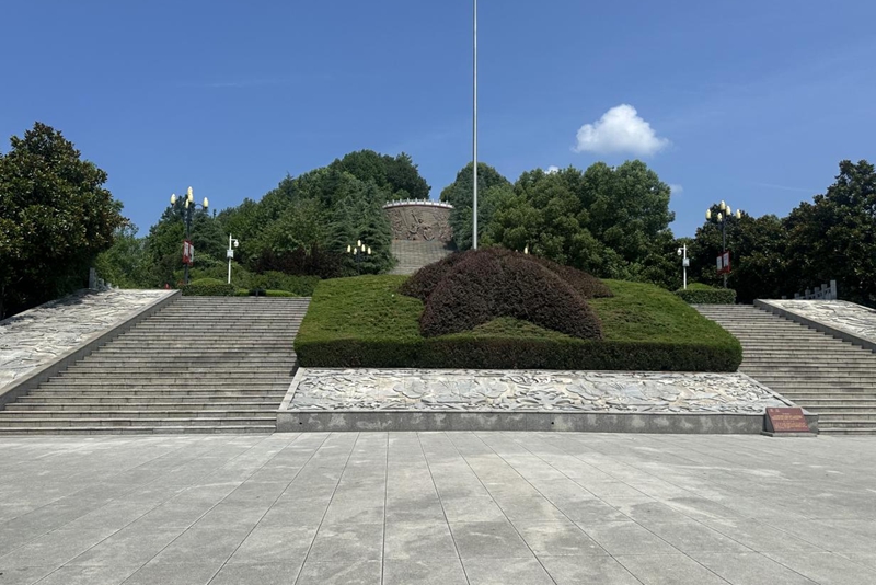 红军广场依山而建,台阶数量寓意着金寨县在不同历史时期为中国革命所做出的独特贡献。步道两侧的花岗岩浮雕,生动再现了红军战士冲锋陷阵的英勇场景。在庄严肃穆的红军广场,全体队员面向革命烈士塔肃立致敬,深切缅怀革命先烈。章颖同学以金寨革命史为引,结合习近平总书记“一寸山河一寸血,一抔热土一抔魂”的殷切嘱托,通过挖掘红色资料、梳理革命事迹、向烈士纪念塔敬献花篮,带领大家沉浸式感受金寨儿女投身革命的壮阔历程。实践队员陈瑶感慨道:“今天的幸福生活是先烈们用生命换来的,我们一定要守护好这片红色土地,传承好红色基因!”