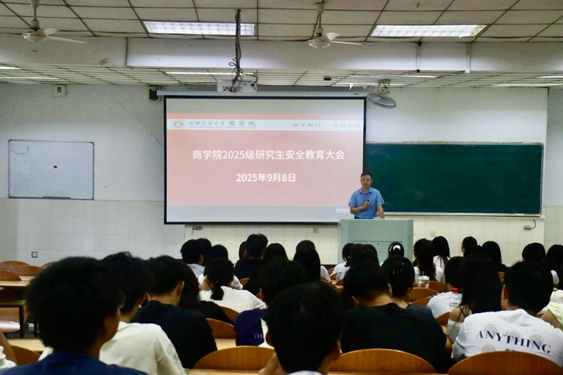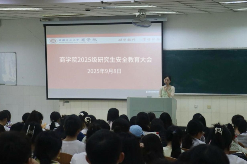 2025级研究生安全教育大会。分管院研究生教学管理工作副院长李伟军出席,研究生辅导员郝乐、院研会干部代表、2025级全体研究生参加,会议由辅导员郝乐主持。